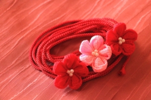 たとえば、赤色の着物なら、白の半衿、ピンクの伊達襟を組み合わせることで、グラデーションが生まれます。