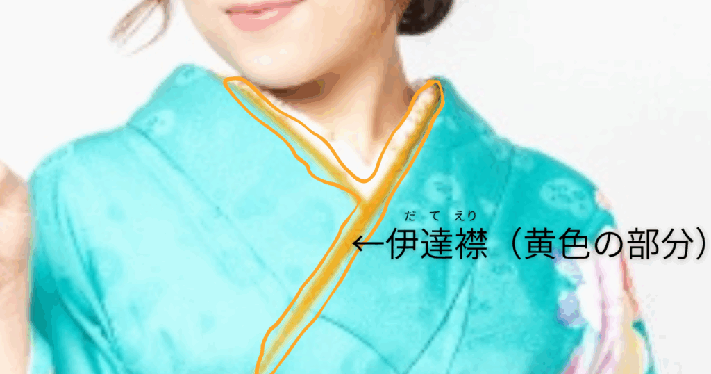伊達襟(だてえり)は、着物の襟と半衿の間に重ねて使う、半衿よりも厚みのある布です。