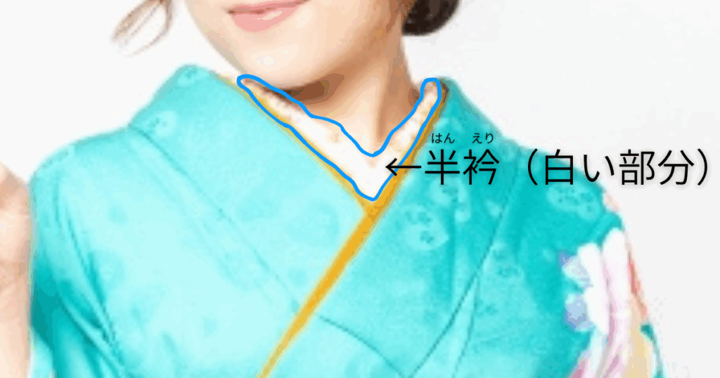 半衿(はんえり)は、長襦袢(ながじゅばん)の襟に縫い付けて使う薄めの布です。