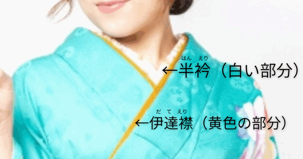 袴の襟元に使われる代表的なものは「半衿(はんえり)」「伊達襟(だてえり)」です。